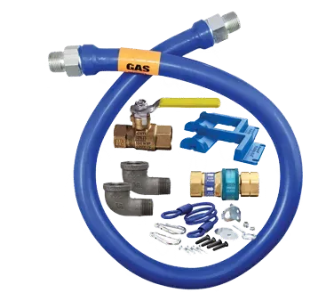 Enhance ambiance with a sophisticated addition for efficient gas cooking and heating. Introducing the Dormont Manufacturing, 16100KIT60PS, Gas Connector Hose Kit. This kit includes a 60" long, 1" inside diameter Dormont Blue Hose, covered with a stainless steel braid and coated with blue antimicrobial PVC. The kit also includes a SnapFast QD for easy installation, a full port valve for optimal gas flow control, and two 90-degree elbows for flexibility in positioning. Safety is a top priority, which is why the kit includes a pair of Safety Set with hardware mounting options. With a limited lifetime warranty, you can trust the durability and reliability of this gas connector hose kit. Designed specifically for commercial restaurant use, this kit ensures safe and efficient gas connections for cooking and heating appliances. Upgrade your restaurant's gas system with the Dormont Manufacturing, 16100KIT60PS, Gas Connector Hose Kit.