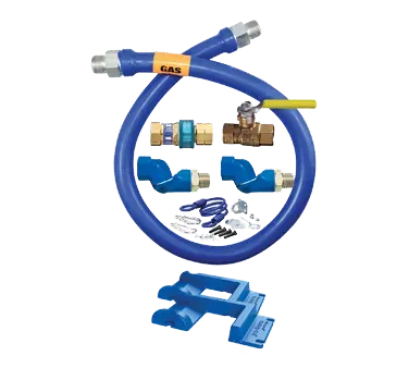 Achieve precision in efficient gas cooking and heating with the Dormont Manufacturing, 16125KIT2S60PS Gas Connector Hose Kit. This kit is designed to meet the demands of commercial restaurant settings, ensuring safe and reliable gas connections. The kit includes a 60" long, 1-1/4" inside diameter hose covered with a stainless steel braid and coated with blue antimicrobial PVC. It also features a SnapFast QD for easy installation and two Swivel MAX connectors for flexibility. The kit is equipped with a full port valve and a pair of Safety Set with hardware mounting options, providing added security. With a limited lifetime warranty, you can trust the durability and longevity of this gas connector hose kit. Upgrade your restaurant's gas connections with the Dormont Manufacturing, 16125KIT2S60PS Gas Connector Hose Kit and experience enhanced efficiency and safety in your kitchen.