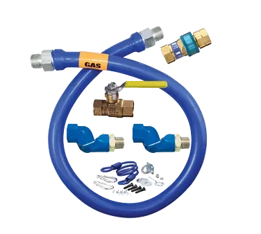 Transform tasks with essential water access and use with the Dormont Manufacturing, 1650KIT2S36 Gas Connector Hose Kit. Designed specifically for commercial restaurant use, this kit includes a 36" long, 1/2" inside diameter Dormont Blue Hose covered with a stainless steel braid and coated with blue antimicrobial PVC. The kit also features a SnapFast QD for easy installation and two Swivel MAX connectors for added flexibility. With a minimum flow capacity of 69,000 BTU/hr, this kit ensures reliable gas supply to your restaurant equipment. The included full port valve allows for precise control of gas flow, while the coiled restraining cable with hardware provides added safety. Backed by a limited lifetime warranty, this Dormont Gas Connector Hose Kit is a durable and reliable choice for any commercial restaurant.