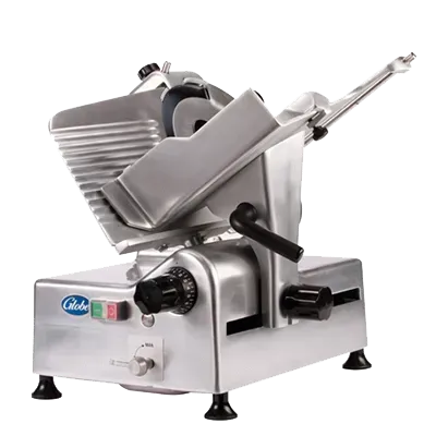 Realize kitchen dreams with the Globe G12A Electric Food Slicer. This top-of-the-line slicer is a must-have for any commercial restaurant. With its 12" diameter knife and extended chute, it can easily accommodate products up to 10-1/2" in height. The pyramid-shaped end weight with gripping teeth ensures a secure grip on the product, while the top-mounted sharpener keeps the knife razor-sharp at all times. The ball bearing chute slide allows for smooth and effortless slicing, while the attached knife ring guard ensures safety during operation. The automatic and independent 35 chute makes slicing even easier. Made with anodized aluminum construction, this slicer is not only durable but also easy to clean. With motor overload protection and a power indicator light, you can trust that this slicer will perform reliably in your busy kitchen. NSF certified and backed by Globe's reputation for quality, the G12A Electric Food Slicer is the perfect addition to any commercial restaurant.