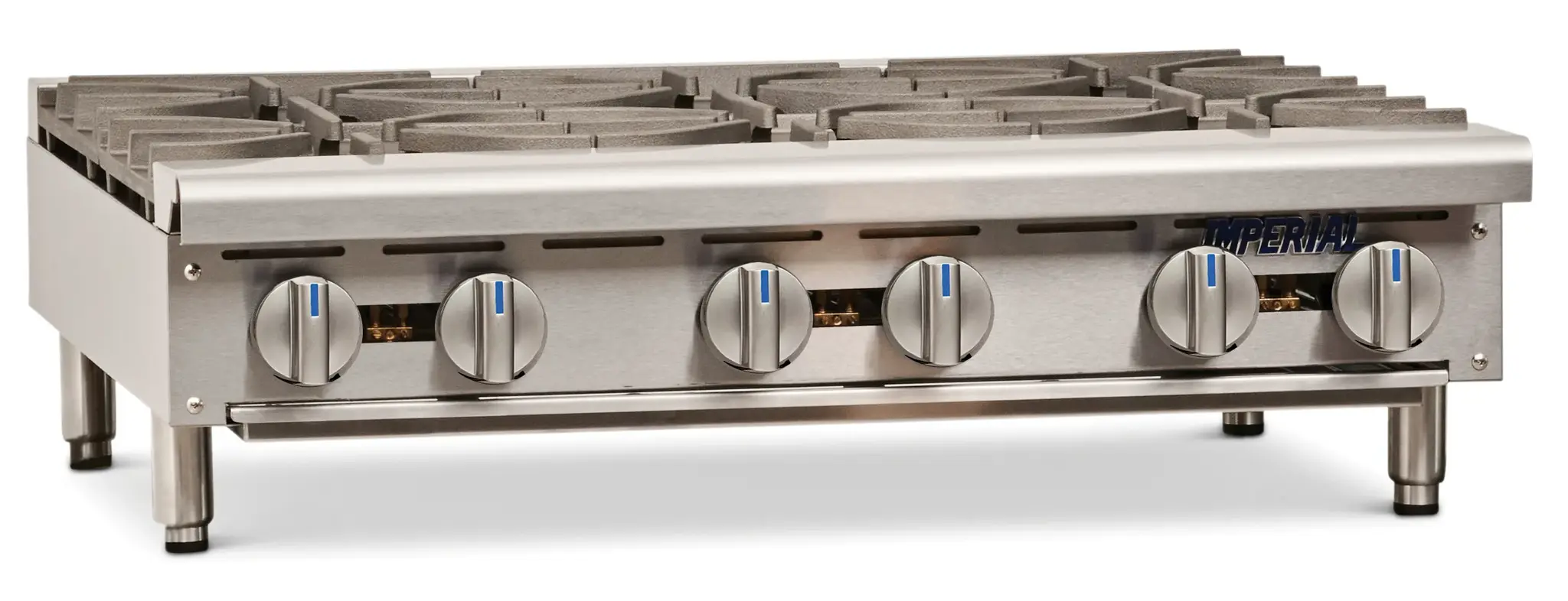 Introducing the Imperial IHPA-10-60 Hotplate, a must-have for any commercial restaurant looking to craft culinary wonders. This gas countertop hotplate features 10 open burners with cast iron grates and burners, allowing for efficient and precise cooking. The removable crumb tray makes cleaning a breeze, while the stainless steel front, sides, and landing ledge ensure durability and a sleek appearance. With 320,000 BTU, this hotplate delivers powerful performance, perfect for high-volume cooking. The adjustable feet and 4" legs provide stability and flexibility in any kitchen setup. Certified by CSA Flame, CSA Star, NSF, and CE, this hotplate guarantees safety and quality. Whether you're searing, saut ing, or simmering, the Imperial IHPA-10-60 Hotplate is the ideal companion for any professional chef. Upgrade your kitchen with this reliable and efficient hotplate and elevate your culinary creations to new heights.