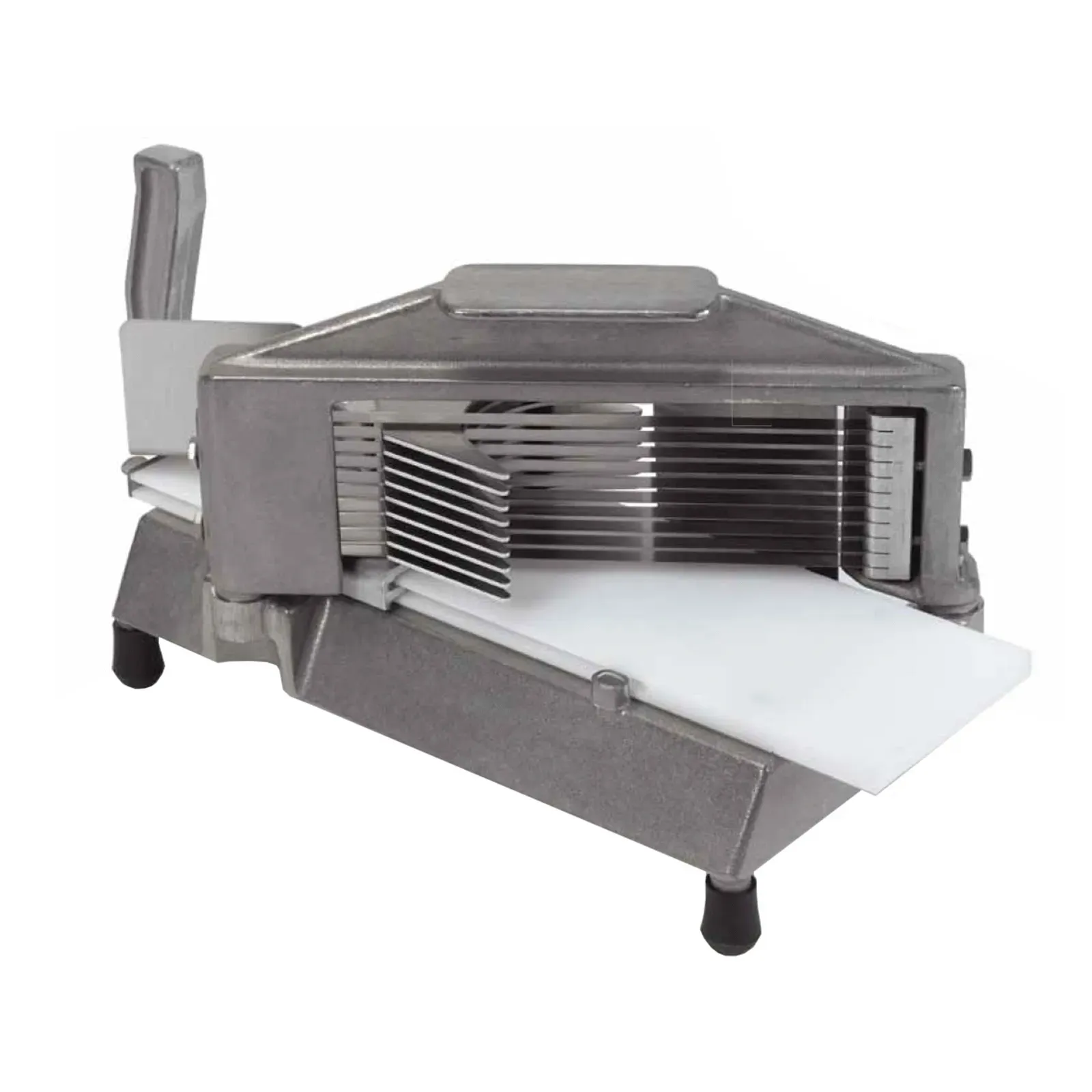 Introducing the Nemco 55600-3 Tomato Slicer, designed for culinary mastery in commercial restaurant settings. Engineered with precision, this manual slicer is a must-have tool for any professional kitchen. With its stainless steel blades and self-lubricating track, it effortlessly slices tomatoes into perfect 3/8" thick slices. The vertical handle and protective guards ensure safe and efficient operation, while the polyethylene slide board allows for smooth and easy slicing. Made with cast aluminum and steel construction, this slicer is built to withstand the demands of a busy restaurant environment. The rubber feet provide stability and prevent slipping during use. NSF certified, this slicer meets the highest standards of quality and safety. Enhance your culinary creations with the Nemco 55600-3 Tomato Slicer and experience the convenience and efficiency it brings to your commercial kitchen.