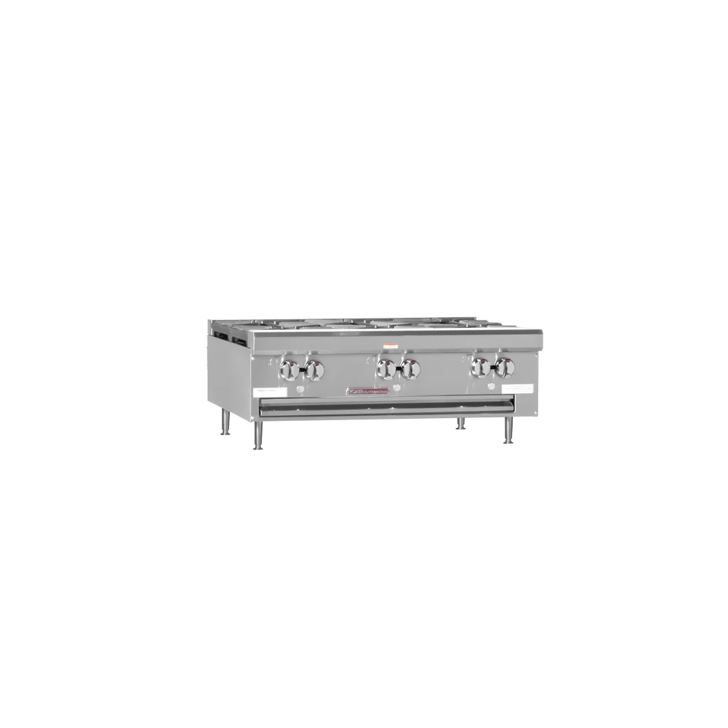 Fuel your restaurant's success with the Southbend, HDO-24SU, Hotplate, Countertop, Gas. This high-quality hotplate is designed to meet the demands of a busy commercial kitchen. With its two 33,000 BTU open burners and two 33,000 BTU step-up open burners, this hotplate provides powerful and efficient cooking performance. The manual controls allow for precise temperature adjustments, ensuring that your dishes are cooked to perfection every time. The removable cast iron grates and crumb tray make cleaning a breeze, saving you valuable time and effort. Made with a stainless steel front, sides, and 4" adjustable legs, this hotplate is not only durable but also easy to clean and maintain. With a total BTU of 132,000, this hotplate can handle even the busiest of kitchens. CSA and NSF certified, you can trust that this hotplate meets the highest standards of safety and sanitation. Fuel your restaurant's success with the Southbend, HDO-24SU, Hotplate, Countertop, Gas.