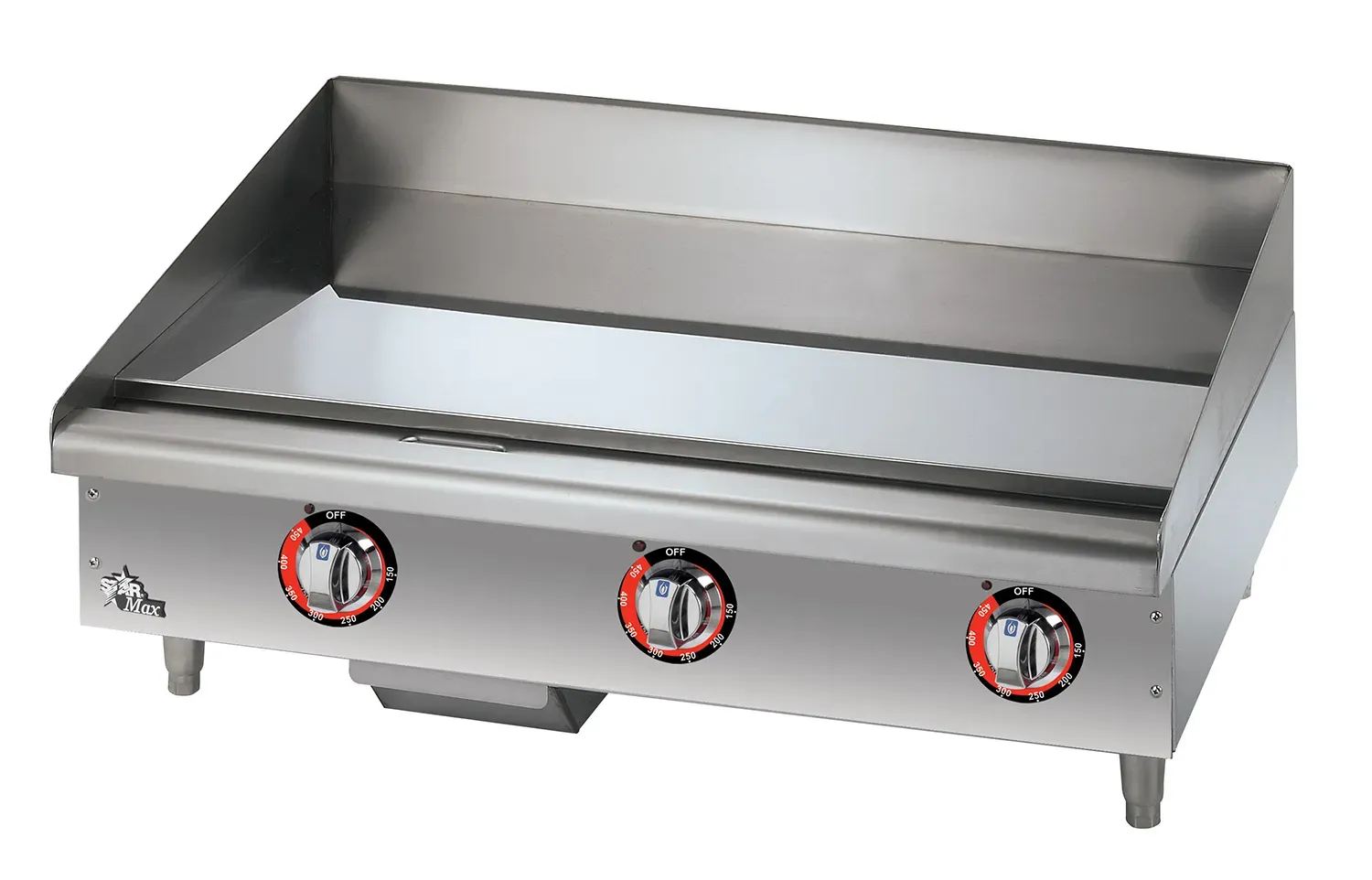 Star-Max® electric griddles provide precise temperature control and are a perfect addition to any food service operation. Electric griddles are constructed with quality and durability in mind. Polished steel or chrome plate options available. Available in 15”, 24”, 36” and 48” widths. Snap-action thermostat adjusts from 150° to 450°F.