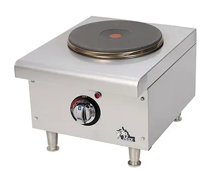 Star-Max® electric hot plates are designed to be a reliable, versatile, and maintenance-free solution for almost any menu item. The 501FF model features a single 8.5" diameter cast iron french top and utilizes 208/240 electric power.