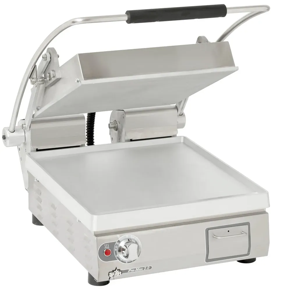 The Star Pro-Max 2.0® sandwich grills are designed to cook wraps, sandwiches, chicken breasts, hamburgers, and much more. The design is compact and portable providing flexibility. These grills can come with smooth, grooved, or combination surfaces, made of aluminum or iron. The available electronic temperature control and timer are industry leading options.