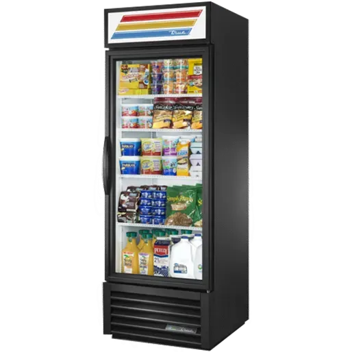 Experience kitchen innovation with the True Manufacturing GDM-23-HC~TSL01 Refrigerator Merchandiser. This one-section refrigerated merchandiser is designed to meet the needs of commercial restaurants. With its True standard look version 01, it combines functionality and style seamlessly. The merchandiser features four shelves, providing ample space to showcase a variety of products. The low-E thermal glass hinged door not only enhances visibility but also helps to maintain the ideal temperature inside. LED interior lights illuminate the interior, making it easy to locate items. The powder-coated steel exterior ensures durability, while the white aluminum interior with a stainless steel floor adds a touch of elegance. The GDM-23-HC~TSL01 uses R290 Hydrocarbon refrigerant, which is not only environmentally friendly but also energy-efficient. With a 1/3 HP compressor, this merchandiser delivers reliable performance. Made in the USA and ENERGY STAR certified, the True Manufacturing GDM-23-HC~TSL01 Refrigerator Merchandiser is the perfect addition to any commercial restaurant.
