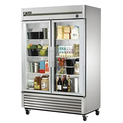 Fuel your restaurant's success with the True Manufacturing T-49G-HC~FGD01 Refrigerator, Reach-In. This two-section reach-in refrigerator is designed to meet the demands of a busy commercial kitchen. With its framed glass doors and LED interior lighting, it not only provides easy visibility of your stored items but also adds a touch of elegance to your establishment. The six adjustable PVC-coated wire shelves offer ample space for organizing your ingredients and supplies. Made in the USA, this refrigerator features a stainless steel front, aluminum sides, and a clear coated aluminum interior with a stainless steel floor, ensuring durability and easy cleaning. Equipped with 4" castors, it can be easily moved for cleaning or rearranging. The T-49G-HC~FGD01 uses R290 Hydrocarbon refrigerant, which is not only environmentally friendly but also helps reduce energy consumption. With its ENERGY STAR certification, this refrigerator is not only efficient but also helps you save on utility costs. Trust True Manufacturing to deliver reliable and high-quality refrigeration solutions for your restaurant.